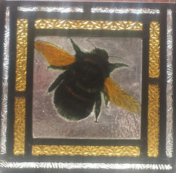 We only use the old traditional paints, which gives a unique & original look. Shades of black, different colours of ancient browns & stain silver are applied to the glass over several stages & fired each times creating a unique depth of different colours & shades directly on the glass. After the last firing has cooled, the panel can be assembled together.